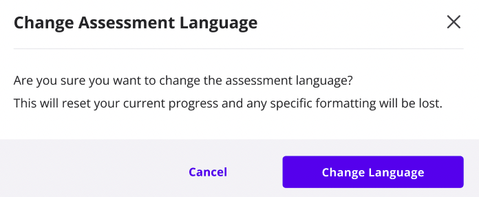 If you manually translates a single question into another language (different from the assessment language):The assessment language will be reset to “no language” to avoid mismatches between assessment-level language and question-level language.