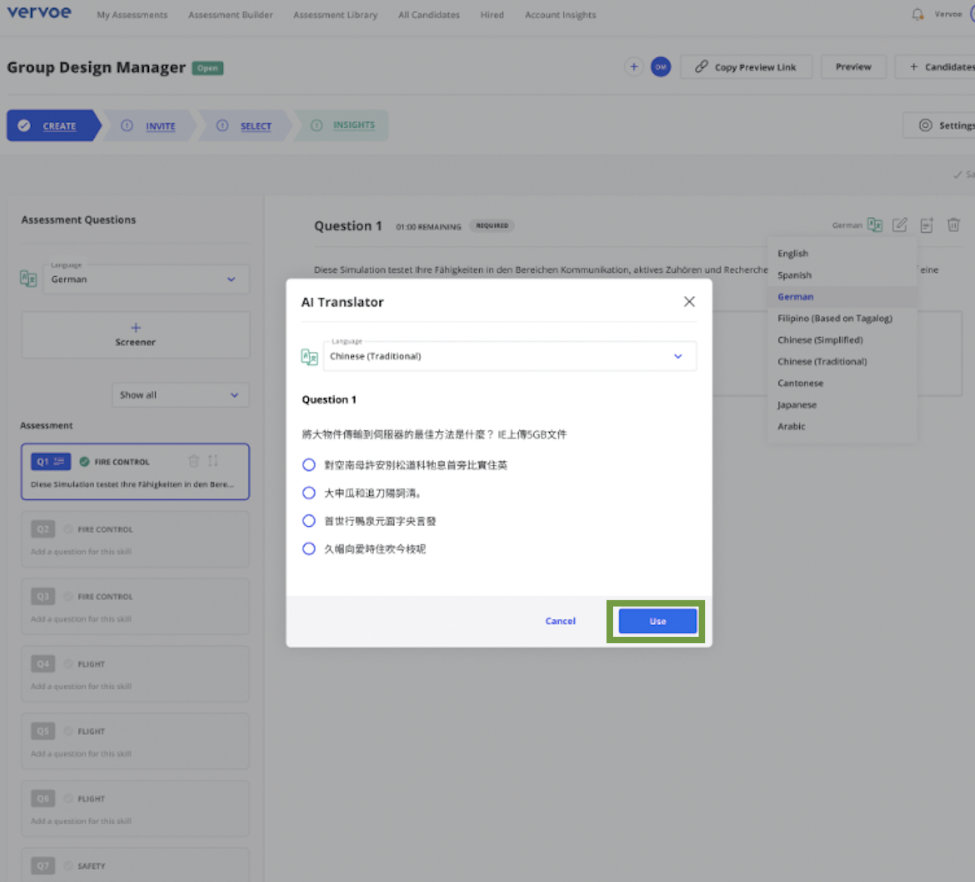 Seamlessly translate your whole assessment or specific questions within your assessment with the click of a button!